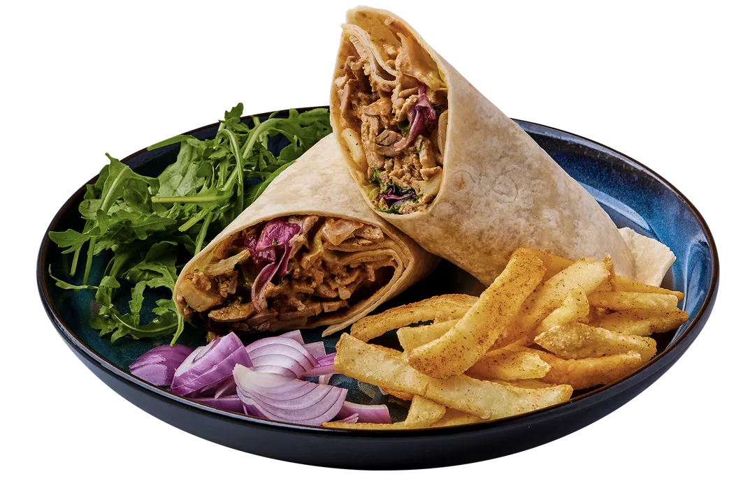 Kylling doner med wraps, salat, husets coleslaw og dressing.